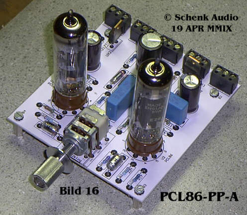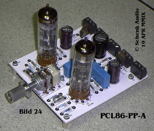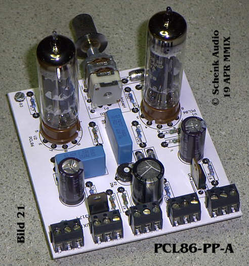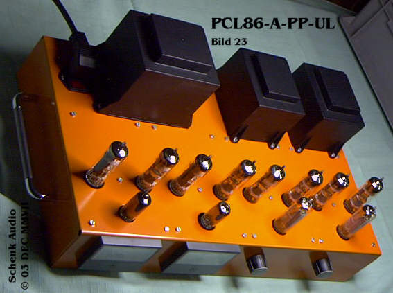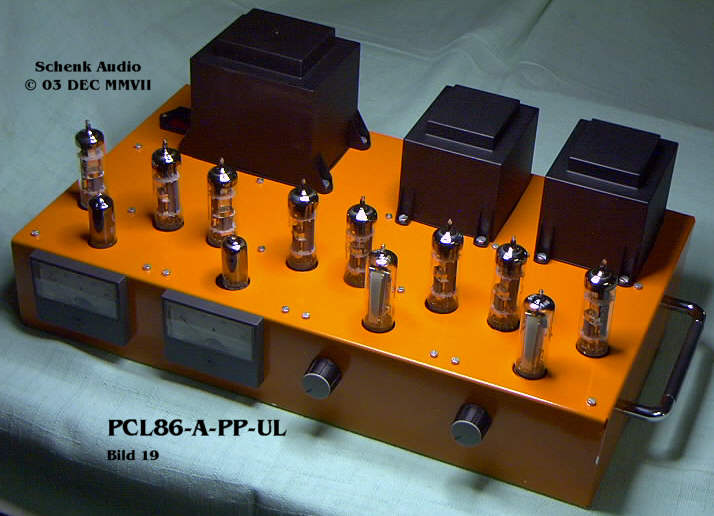 - Klasse-A, Gegentaktverstärker in Stereo-Ausführung mit PCL86
